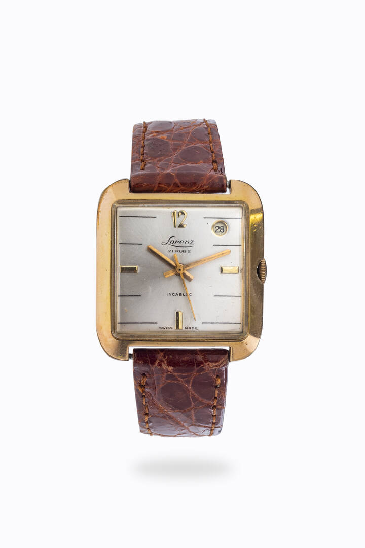 Cassa placcata con fondello a scatto. Quadrante argento con datario al 2