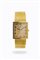 Cassa in oro, di forma, con fondello a scatto recante una dedica ad personam. Quadrante color ocra con lavorazione fiorentino e numeri Breguet serigrafati. Bracciale in oro integrato, effetto tessuto con chiusura a scomparsa
