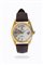 Cassa in oro con lunetta godronata e fondello a vite Quadrante argento con indici geometrici applicati e minuteria radiale aperta. Presente ad ore 12 la finestrella indicante il giorno della settimana in spagnolo ed al 3 quella della data
