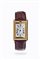 Cassa in oro, di forma, con zaffiro cabochon sulla corona di carica e caratteristico sistema che permette alla cassa di ruotare di 180 gradi e lasciare intravedere il movimento mediante il fondello in vetro. Quadrante argento con numeri romani e minuteria a binario chiusa serigrafata. Bracciale con chiusura clasp Cartier in oro.