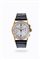 Cassa in oro rosa con fondello a scatto e tasti quadri della cronografia. Quadrante indelebile con indici geometrici applicati e numeri arabi al 12 ed al 6. Sub-contatore dei secondi continui ad ore 9 e dei 30 minuti cronografici al 3.