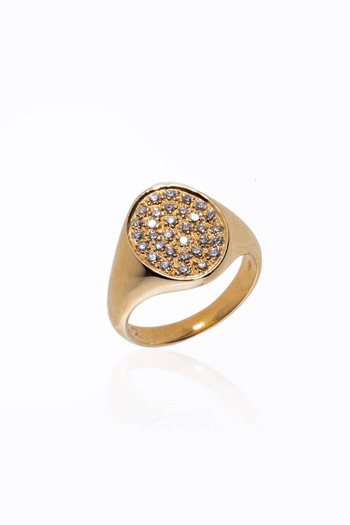 in oro rosa, sommità ovale con pavé di diamanti taglio brillante per totali ct 0,35 ca