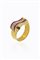 in oro giallo, sommità a voluta, con due file di rubini taglio carré e cabochon per totali ct 0,90 ca e fila di diamanti taglio brillante per totali ct 0,25 ca