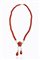 composta da barilotti di corallo rosso mediterraneo del diam. di mm 7,3 a 9 ca; al centro cammeo inciso con volto femminile e due frange a goccia in corallo pendenti. Chiusura in oro rosa a bassa caratura