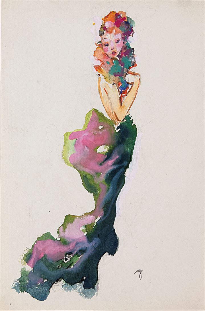 GOLIA (Eugenio Colmo) Torino 1885 - 1967 "Iris" 1960 35x23 acquerello su...