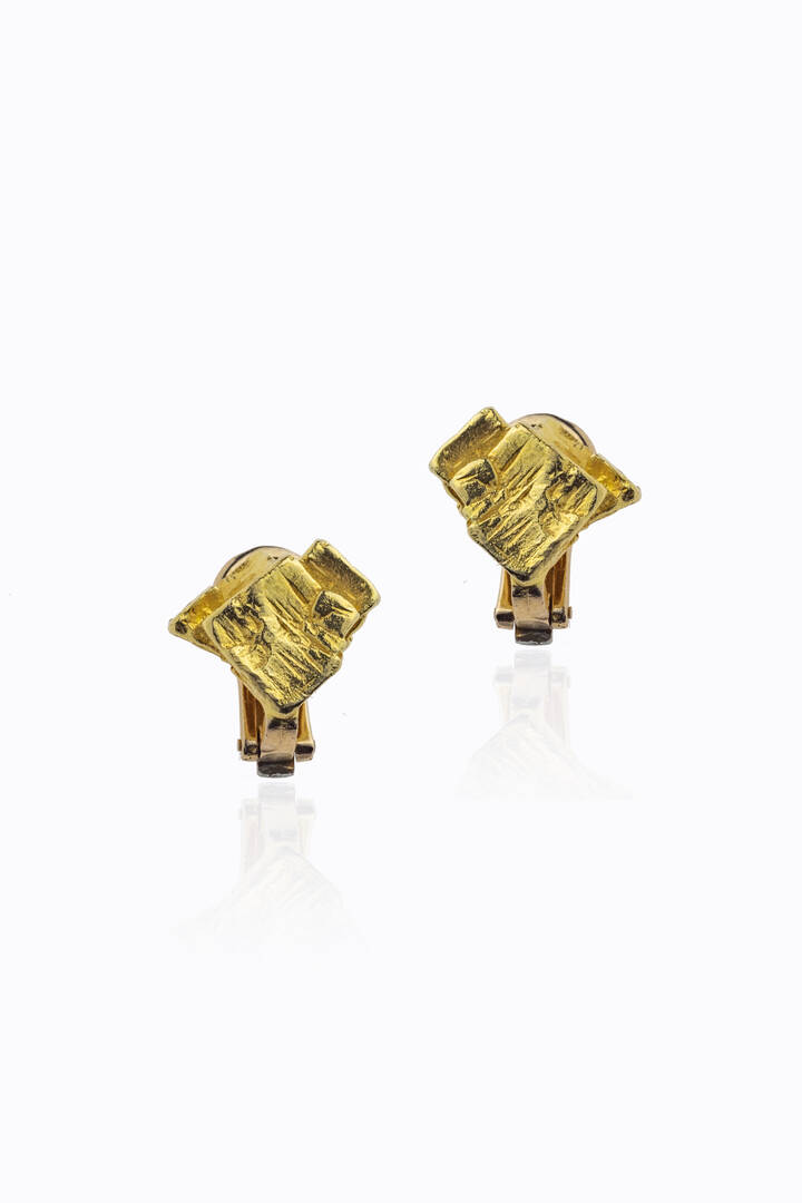 Coppia di orecchini in oro giallo, a clip, di forma geometrica