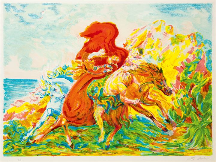 SASSU ALIGI Milano 1912 - 2000 "Cavalieri antichi" 46x63 litografia a colori,...