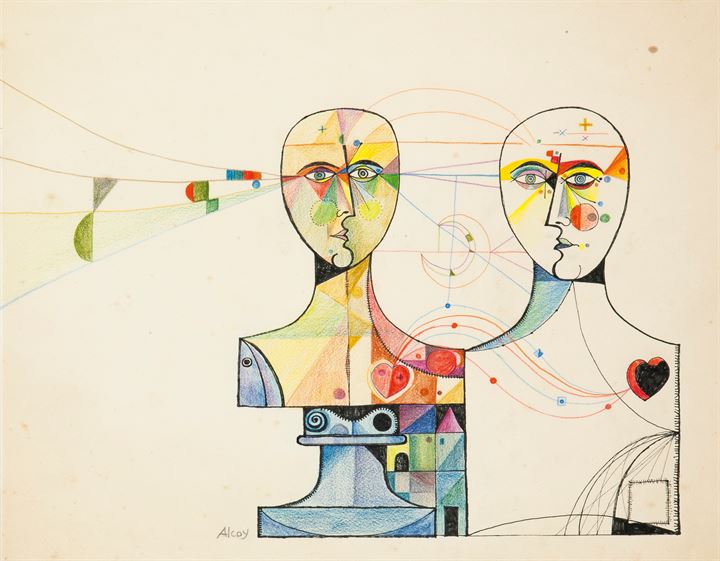 ALCOY EDUARDO E 1930 - 1987 "Busti" 35,5x45,5 tecnica mista su carta Opera...