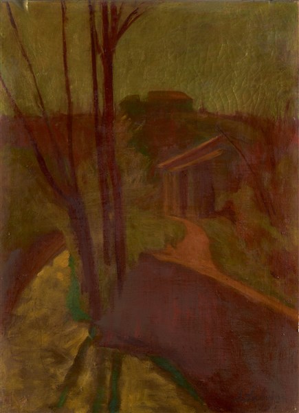 Innocente Salvini "Viale alberato" 1955 olio su tela (cm 80x58) Firmato e datato