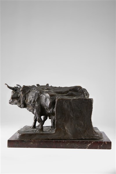 Ernesto Bazzaro "Carro di buoi" 1916 scultura in bronzo (cm 15x24) poggiante su