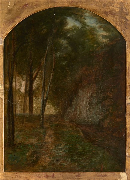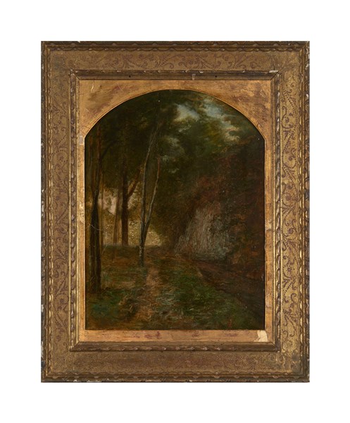 Antonio Fontanesi "Nel bosco" olio su carta (cm 38x28) Al retro: iscrizione per