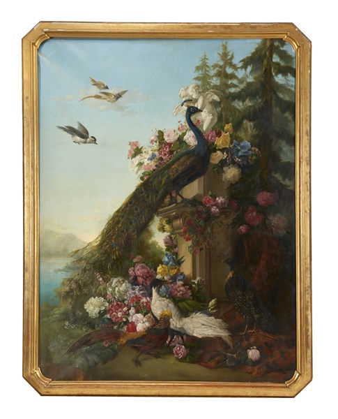 Lot 107 | Guzzi "Fantasia con fiori e volatili" 1875 olio su tela (cm 200x150) Firmato e d