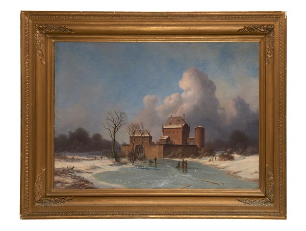 Georg Emil Libert "Paesaggio invernale con figure presso un castello" '50 olio s