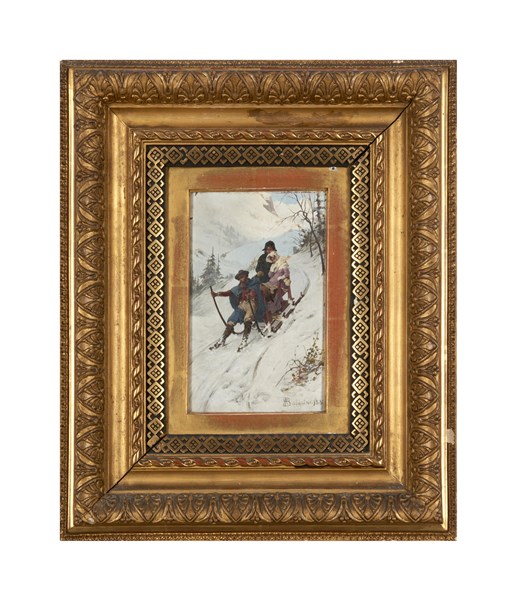 Lot 110 | Alessandro Balduino "Sulla slitta" 1881 olio su tavola (cm 21,5x14) Firmato e da