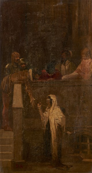 Domenico Morelli "La buona ventura" olio su tavola (cm 59x31,5) Siglato in bass