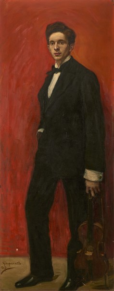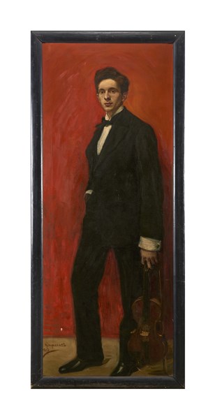 Miro Gasparello "Il violinista" 913 olio su tela (cm 200x79,5) Firmato e datato
