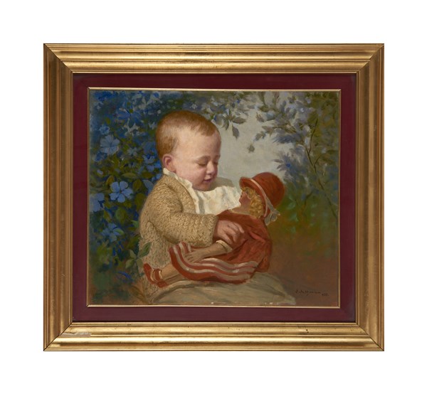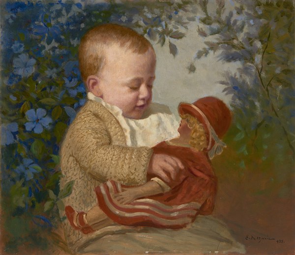 Ettore De Maria Bergler "La bambola" 928 olio su compensato (cm 49x57) Firmato e
