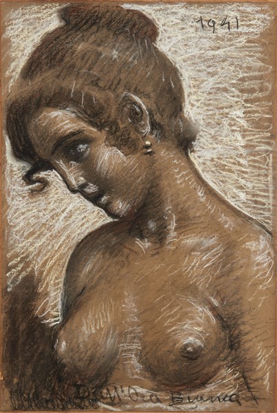 Angelo Dall'Oca Bianca "Nudo femminile" 1941 tecnica mista su carta applicata a