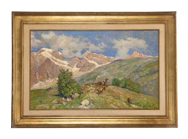 Mario Moretti Foggia "Alti pascoli, Cima Jazzi e Neues Weisstor" olio su compen