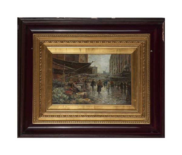 Lot 134 | Attilio Pratella "Scena di mercato" olio su tavola (cm 22,5x35) Firmato in bass