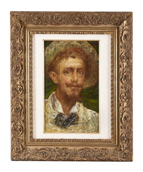 Angelo Dall'Oca Bianca "Autoritratto" olio su tavola (cm 45x28) Locato Roma, tr