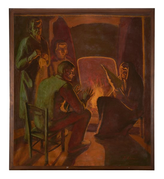 Lot 150 | Innocente Salvini "Accanto al fuoco" olio su tela (cm 140x130) Firmato in basso