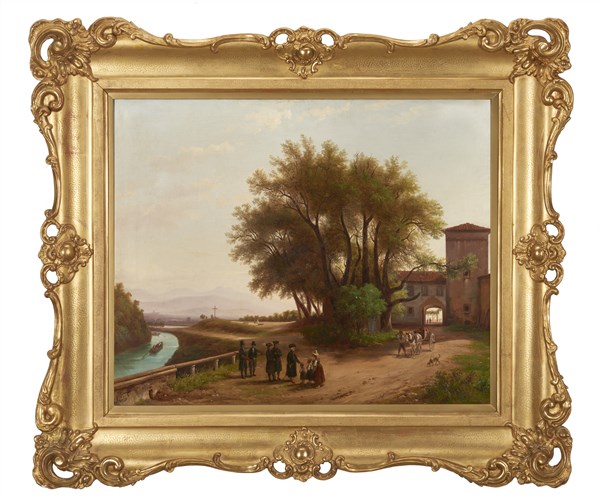 Massimo D'Azeglio "La visita del prelato" olio su tela (cm 65x82) Firmato in ba
