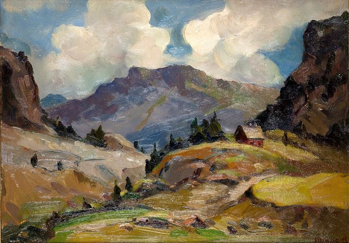 ALBANO MARIO Torino 1896 - 1968 "Claviere - Valle di Susa" 1952 27x37 olio su...