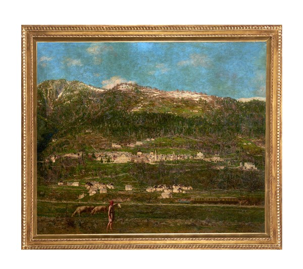 Lot 192 | Giovanni Battista Ciolina "Passaggio del treno a Toceno" 1928 olio su tela (cm 1