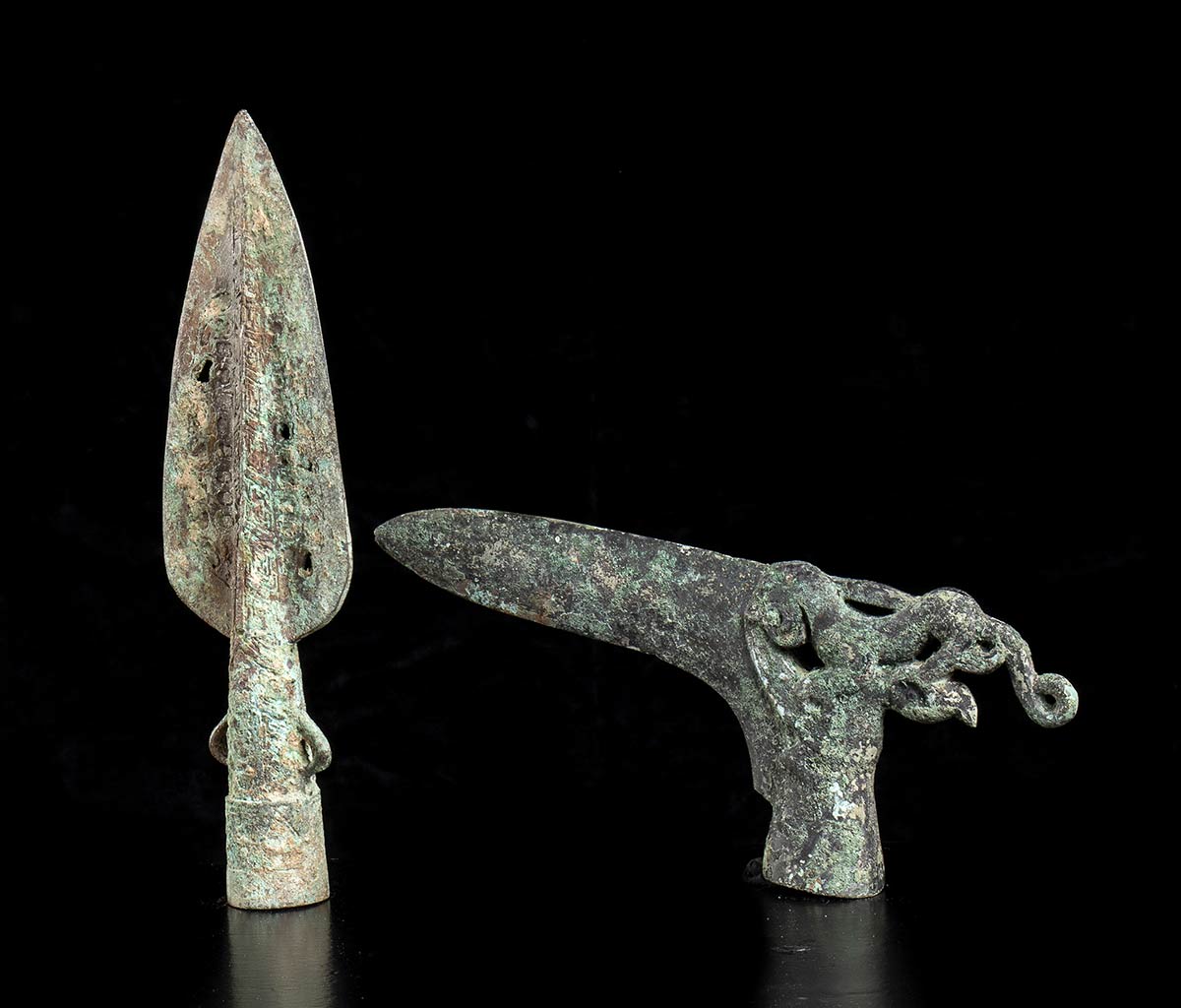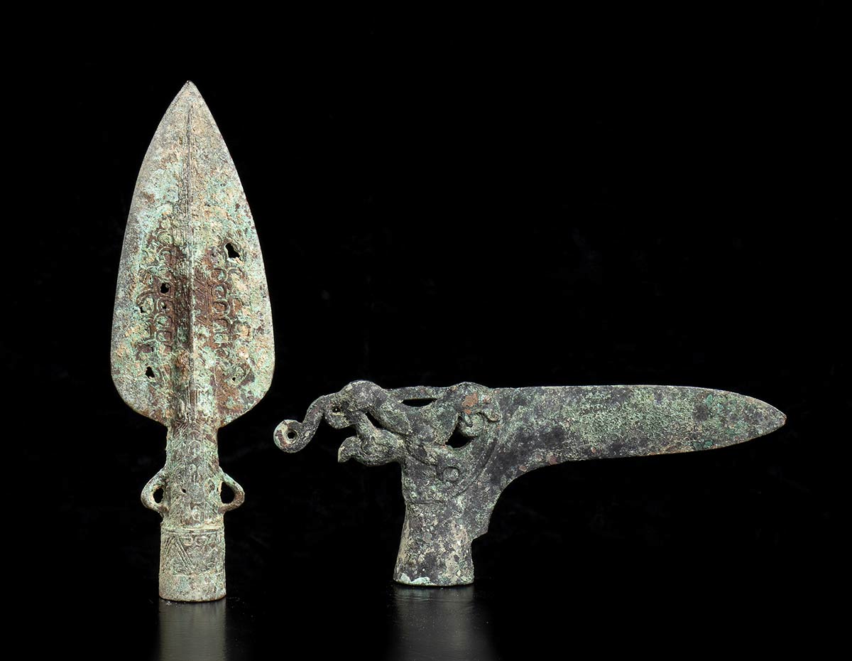 UNA PUNTA DI LANCIA E UN'ASCIA IN BRONZO Cina, stile neolitico