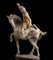 STRANIERO A CAVALLO CON CAGNOLINO IN CERAMICA PARZIALMENTE DIPINTA