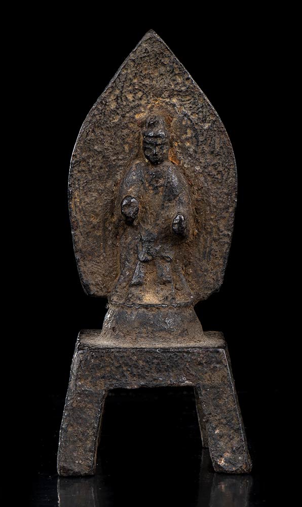 PICCOLA STELE CON BUDDHA STANTE IN BRONZO Cina, stile della dinastia Tang