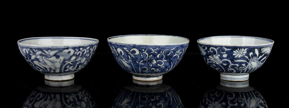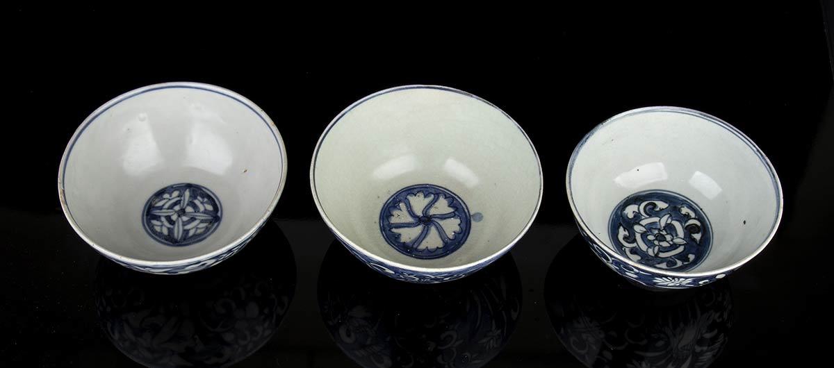 TRE CIOTOLE IN PORCELLANA 'BIANCO E BLU' Cina, dinastia Ming, periodo Wanli