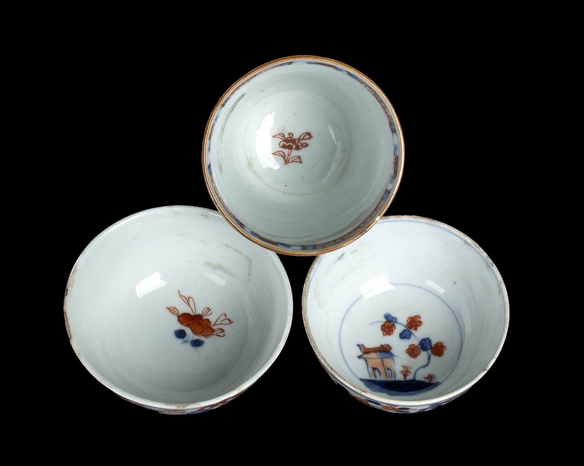 TRE TAZZINE IN PORCELLANA 'IMARI' Cina, dinastia Qing, inizio del XVIII secolo