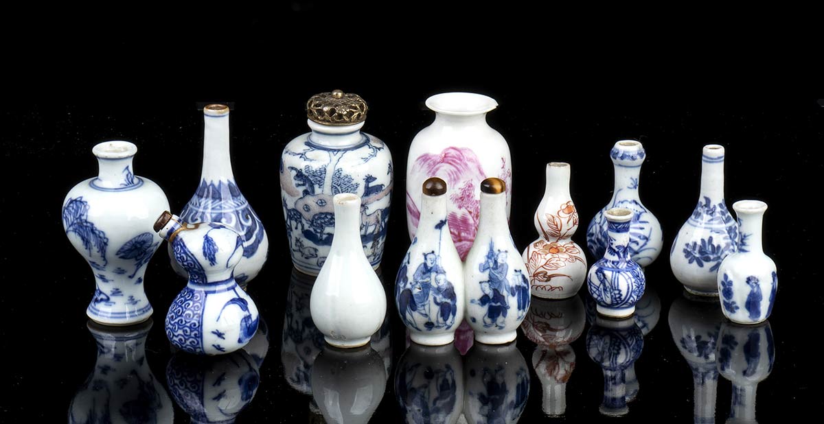 DODICI VASI IN MINIATURA IN PORCELLANA Cina, dinastia Qing