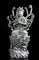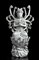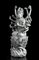 La divinità seduta con le gambe incrociate in posizione padmasana su base a forma di fiore di loto, due mani con i palmi l'uno sull'altro posate in grembo, due altre intrecciate all'altezza del petto, le restanti quattordici disposte a raggiera intorno al busto della figura, ognuna a trattenere un oggetto simbolico, vestita di ampio abito con diadema sulla testa, due marchi impressi sul retro.
