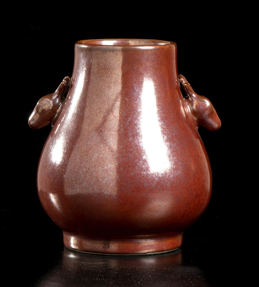 VASO IN PORCELLANA CON INVETRIATURA ROSSA A LUSTRO, HU Cina, inizio del XX secolo