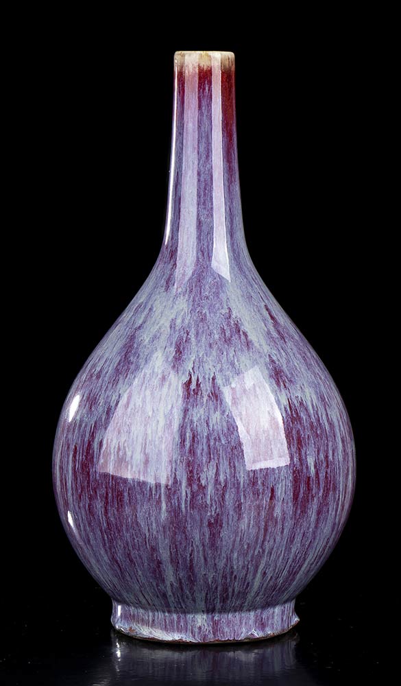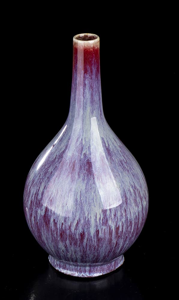 VASO A BOTTIGLIA IN PORCELLANA CON INVETRIATURA FLAMBÉ Cina, XX secolo
