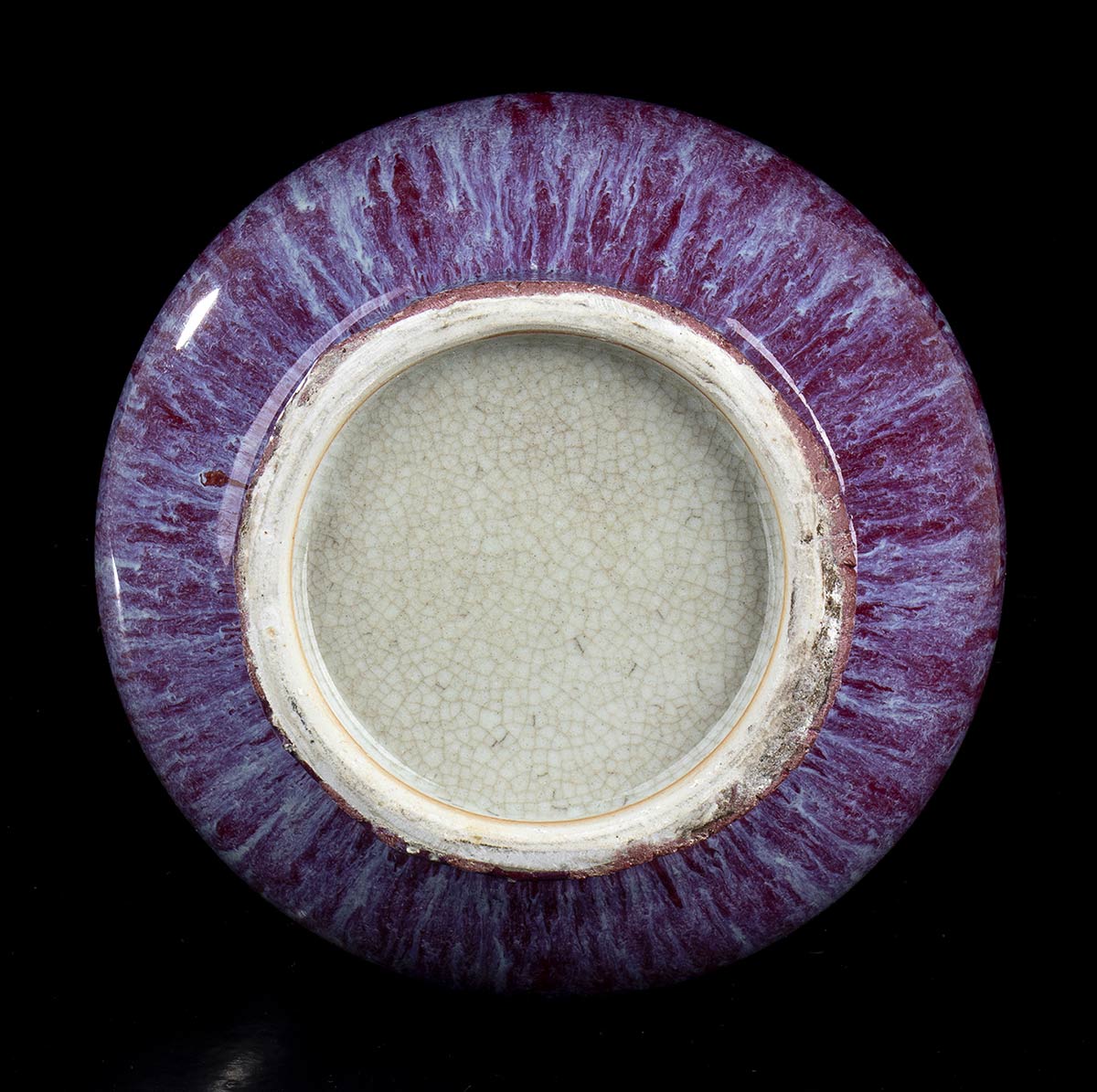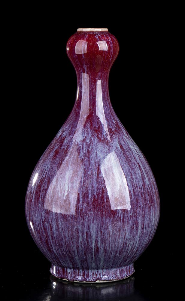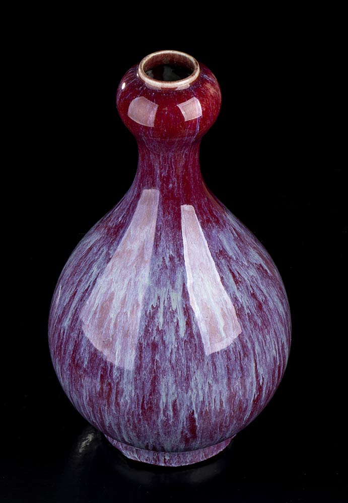 VASO A BOTTIGLIA IN PORCELLANA CON INVETRIATURA FLAMBÉ Cina, XX secolo