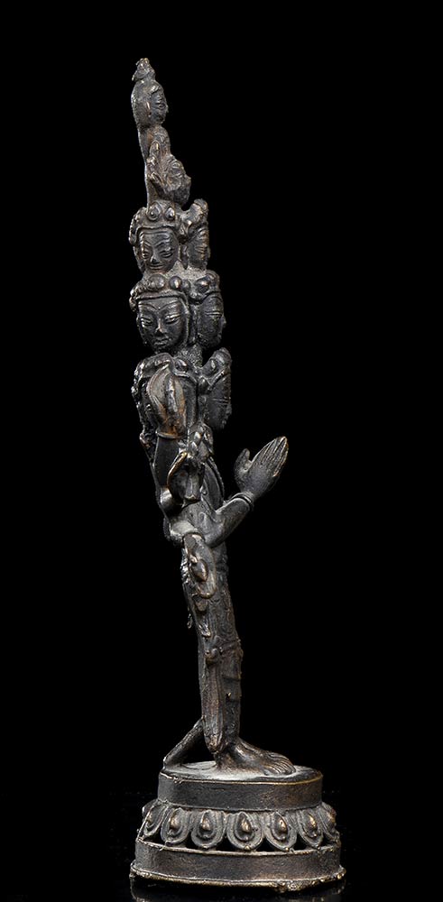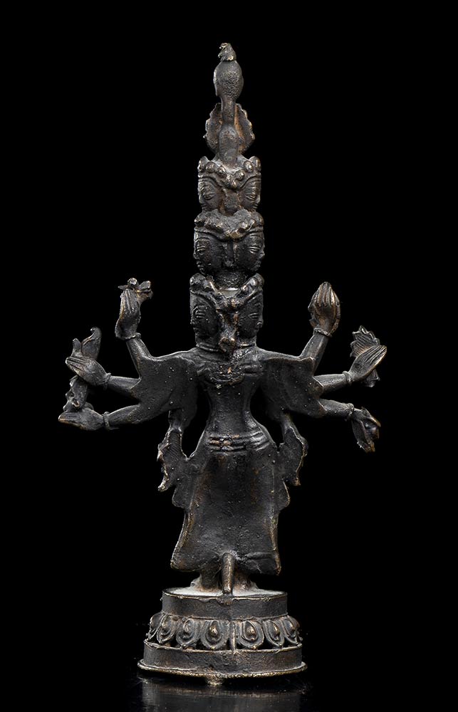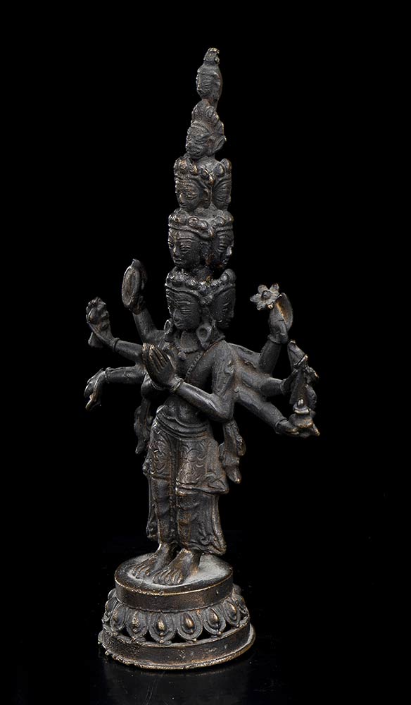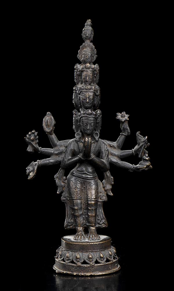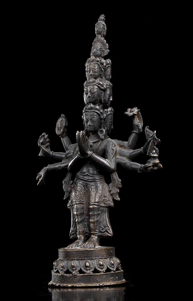 AVALOKITESVARA CON OTTO BRACCIA E DIECI TESTE IN BRONZO