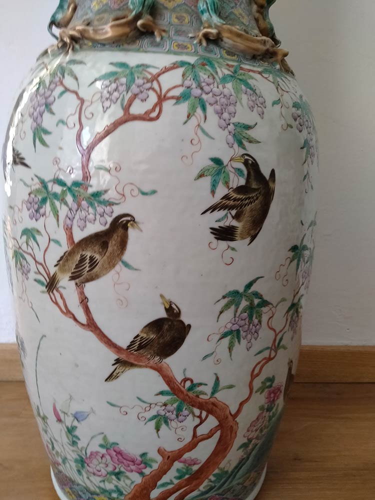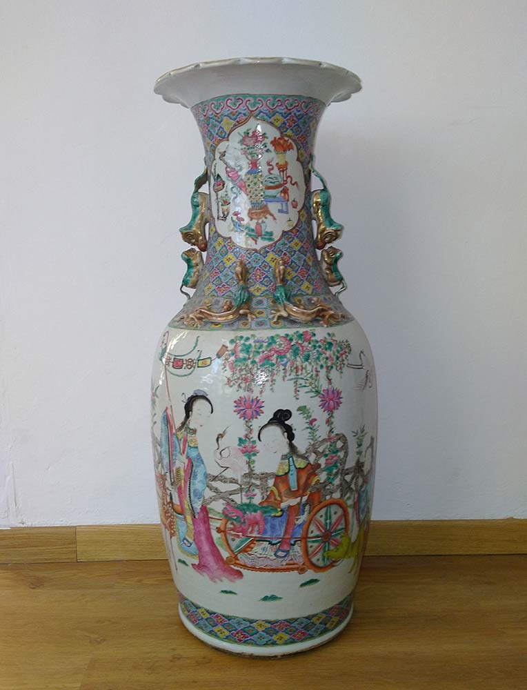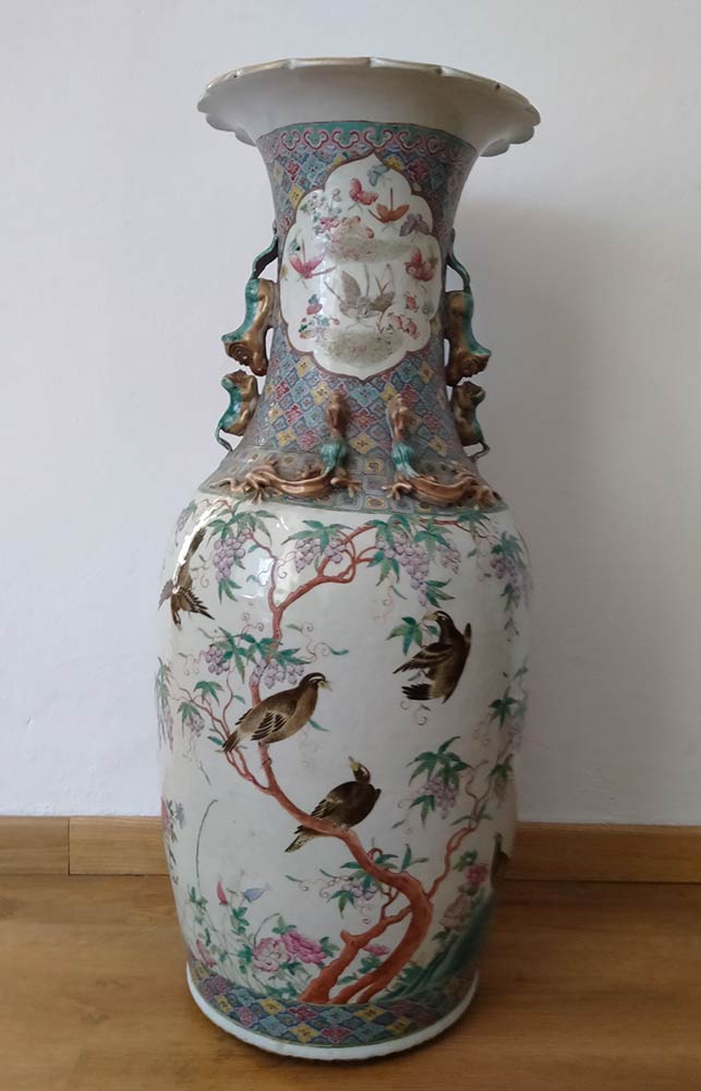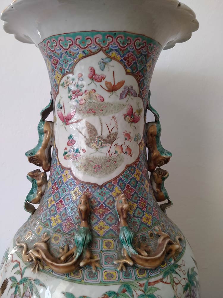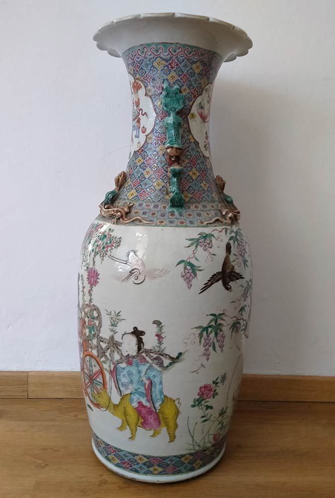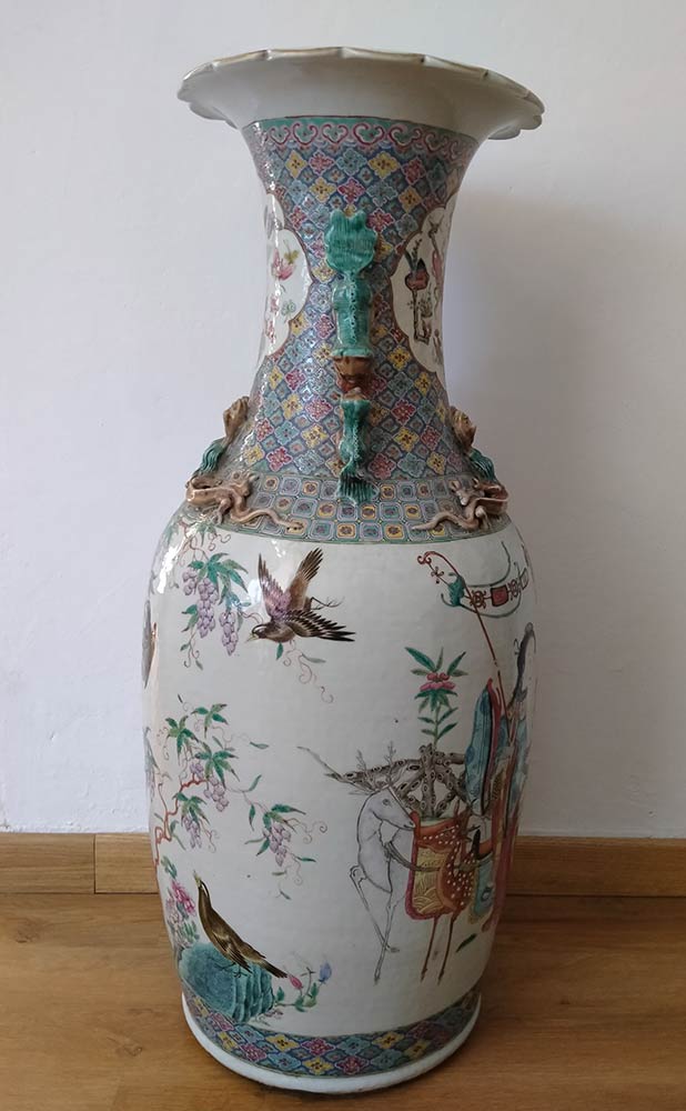 GRANDE VASO A BALAUSTRO IN PORCELLANA CON DECORO POLICROMO Cina, dinastia Qing, XIX secolo