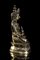 La divinità seduta su basamento a doppio fiore di loto con le gambe incrociate in posizione padmasana, le mani sovrapposte a sorreggere il vaso kasala, vestita di ampio dhoti parzialmente decorato a incisione, i gioielli che indossa abbelliti dall'intarsio di pietre di vario colore.