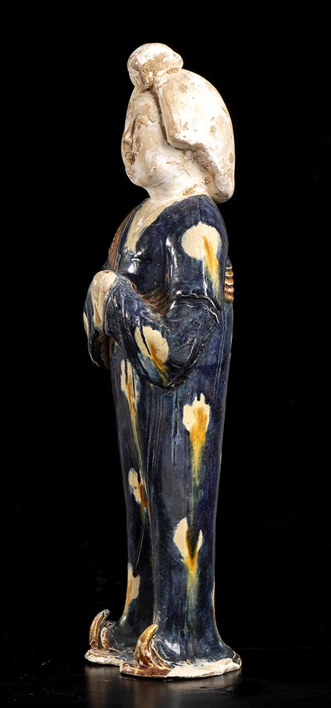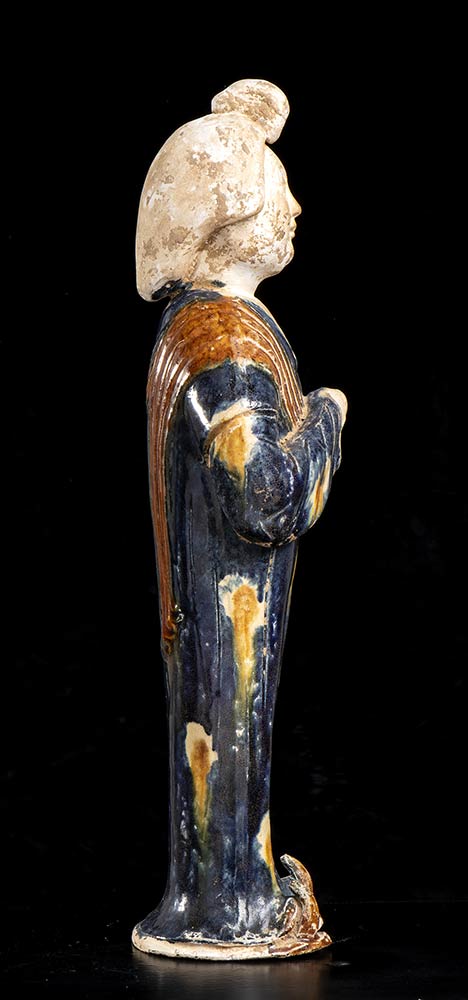 FIGURA FEMMINILE IN TERRACOTTA CON INVETRIATURA SANCAI
