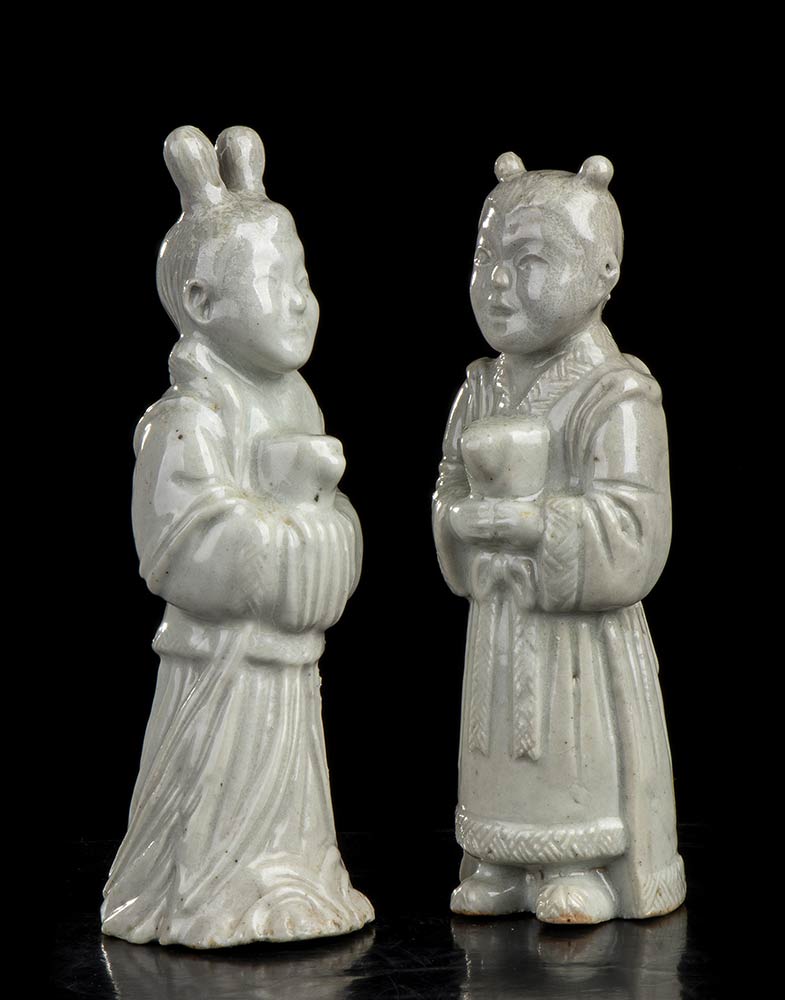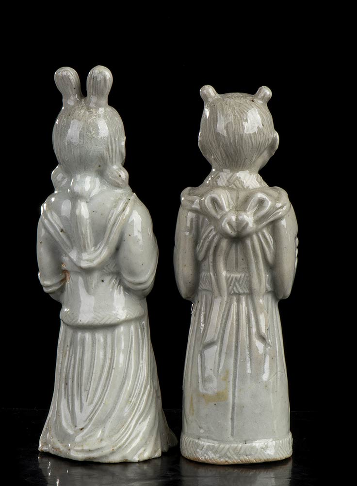 COPPIA DI FIGURE IN PORCELLANA INVETRIATA Corea, periodo Joseon, XVIII-XIX secolo