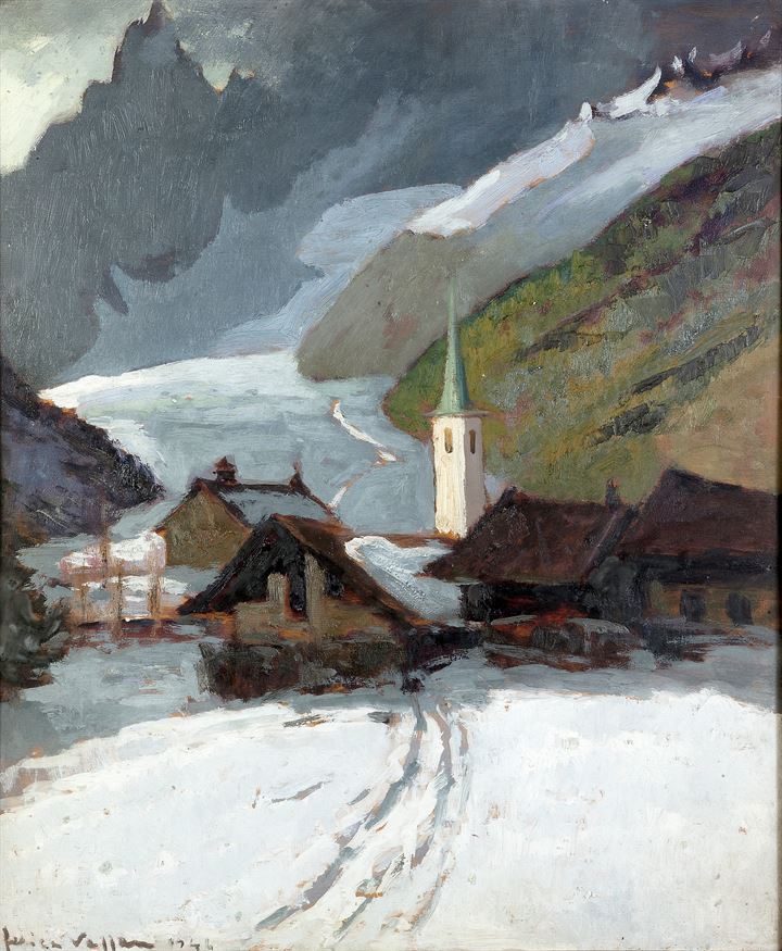 VELLAN FELICE Torino 1889 - 1976 "Entreves a Courmayeur" 1946 60x50 olio su...