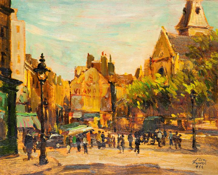 LISA MARIO Torino 1908 - 1992 "Parigi - Marché Mouffetard" 1952 24x30 olio su...