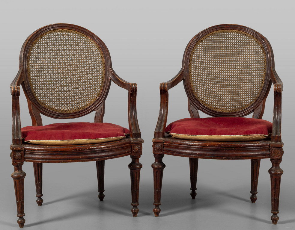 Coppia di poltrone Luigi XVI in noce schienale ovale Genova II metà sec.XVIII