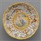 Crespina in maiolica decorata a gran fuoco raffigurante la Madonna dei bagni circondata da raffaellesche Deruta sec.XVII