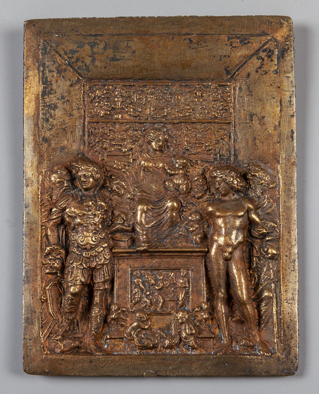 Placca in bronzo raffigurante la Madonna in trono circondata da Santi sec.XVI (dal Moderno)