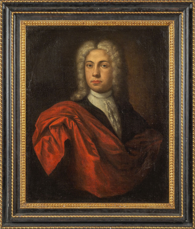 Scuola lombarda sec.XVIII 'Ritratto di giovane con manto rosso' olio